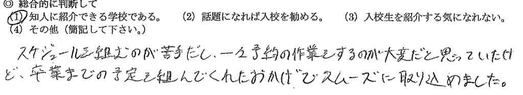 卒業までスムーズなスケジュールを作ってくれた。